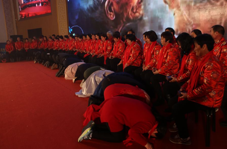 孝親獎得主的父母們提前三天來到了大北京,游覽了首都的大好風光,年會現場上,父母們也被邀請到了舞臺上,青姐為父母們發了紅包和金項鏈。