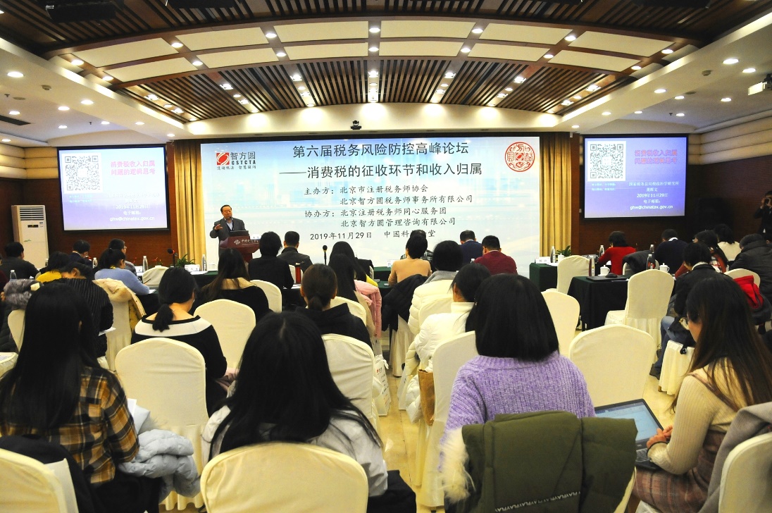 11月29日,由北京市注冊稅務師協會、北京智方圓稅務師事務所聯合舉辦的第六屆“稅務風險防控論壇”在中國科技會堂成功舉辦。來自中國煙草、中國石油、中國石化、英國BP、殼牌等與消費稅有關的企業代表,及永大、立信永安、大華等事務所的代表共70余人參加了本次論壇。來自國家稅務總局科研所、中國社科院、北京大學等單位的專家學者發表了主題演講。