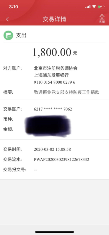 致通振業黨支部支部積極動員支部成員進行捐款,不到一天時間,黨支部6名成員共籌集捐款一千八百元。積小愛,匯以成江河;點滴愛心,能夠匯聚大愛。只要我們萬眾一心、眾志成城,人人都奉獻一份力量,就一定能夠打贏這場疫情防控攻堅戰。