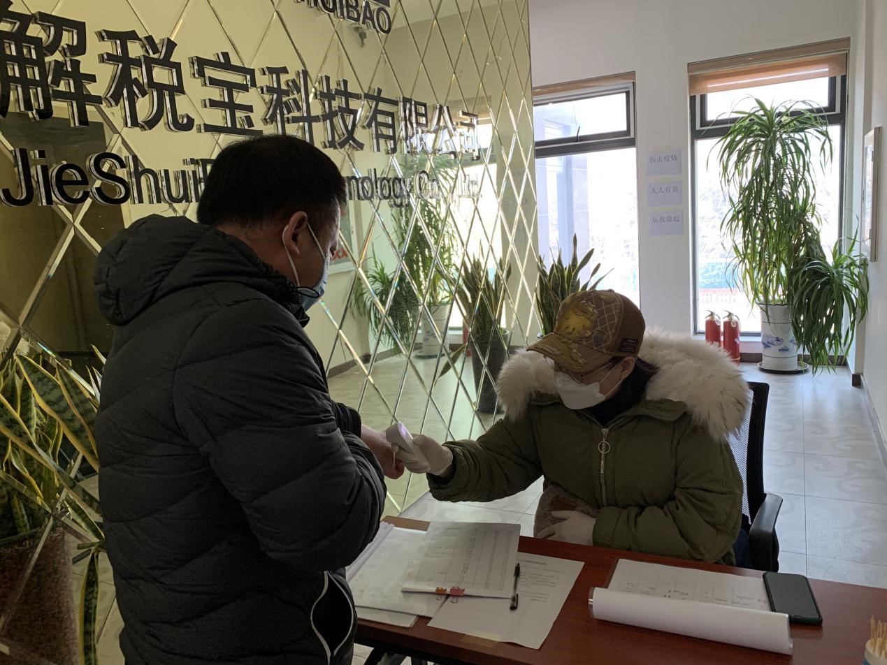 測體溫、登記信息、噴灑消毒液…… 值班人員一系列動作規范快捷。員工測量完體溫有序進入工位、座位疏散保持兩米距離、員工必須佩戴口罩、消毒間、隔離區、會客廳區別清楚并派專人消毒。北京致通振業稅務師事務所在3月2日復工第一天按照中央和北京地方的要求,認真做好規范性動作。